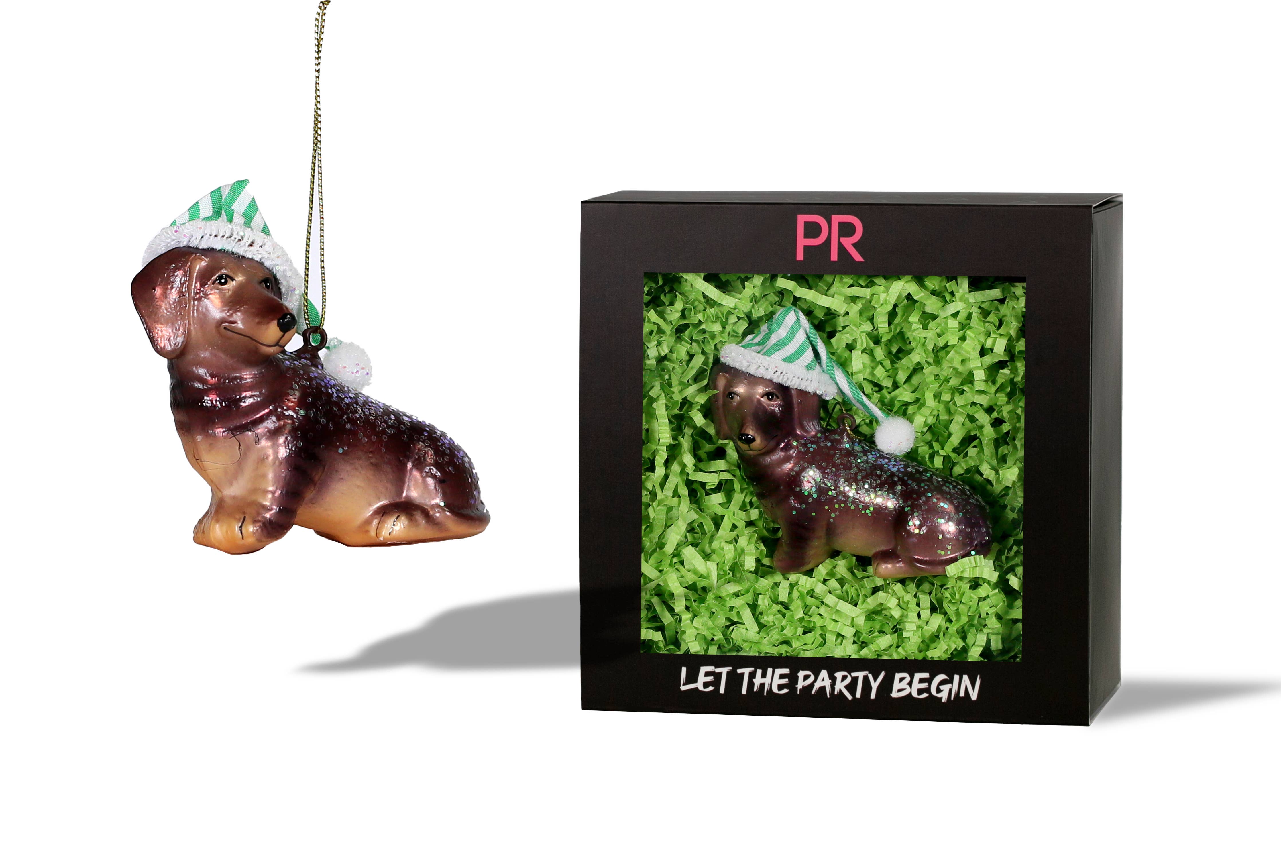 Party Rock | Dachshund With Hat Glass Ornament