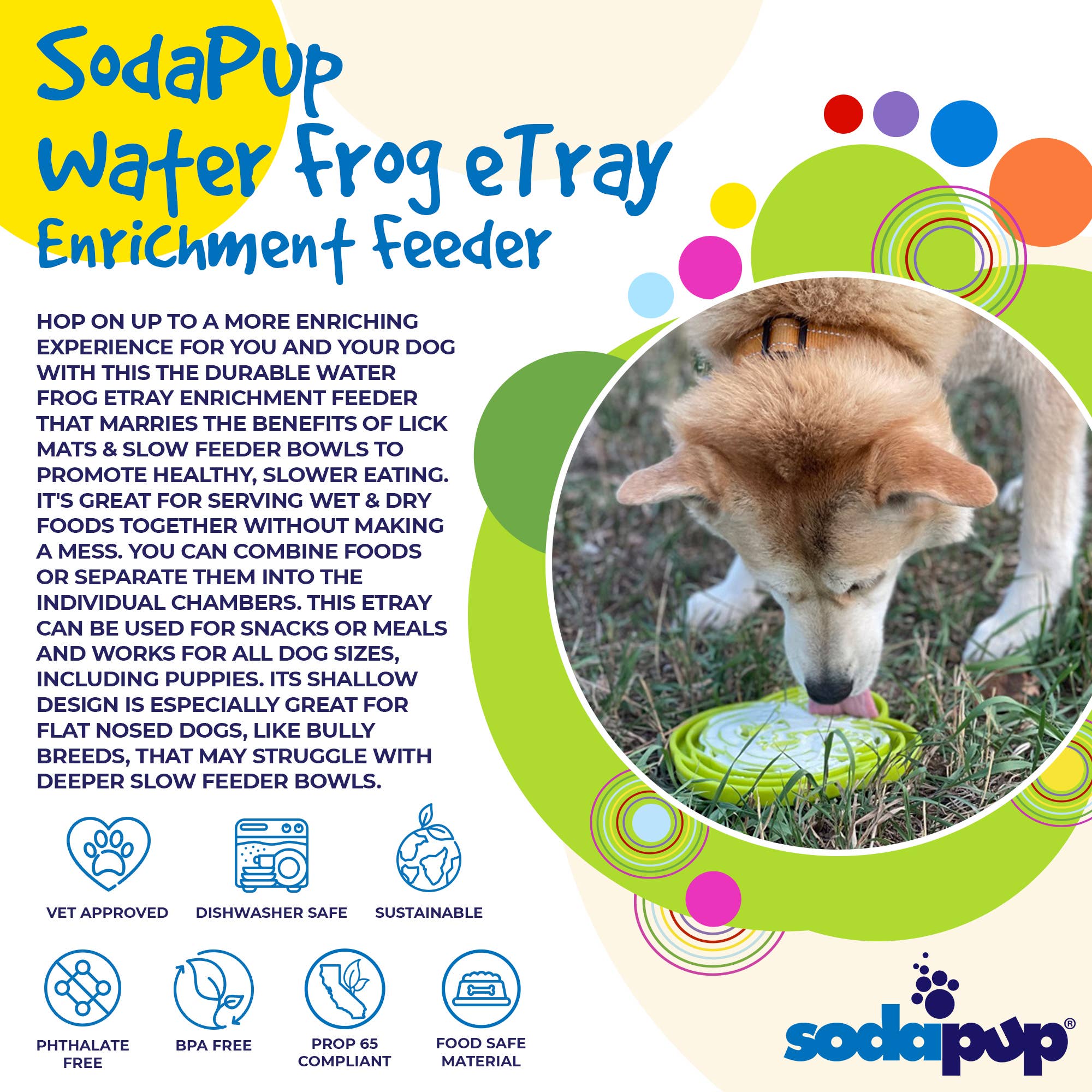 SodaPup Dog Toys - Yin Yang Design Shallow eTray Enrichment Slow Feeder Tray for Dogs: Green
