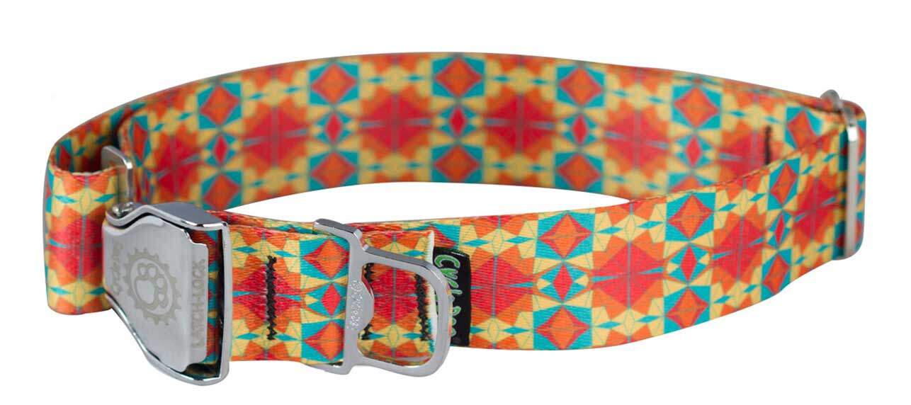Cycle Dog - Ecoweave Red Orange Kaleidoscope Dog Collar: Latch-Lock Metal Buckle / Large / Standard