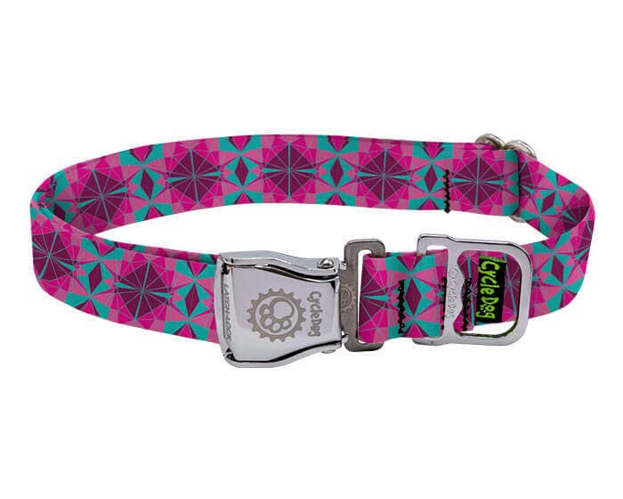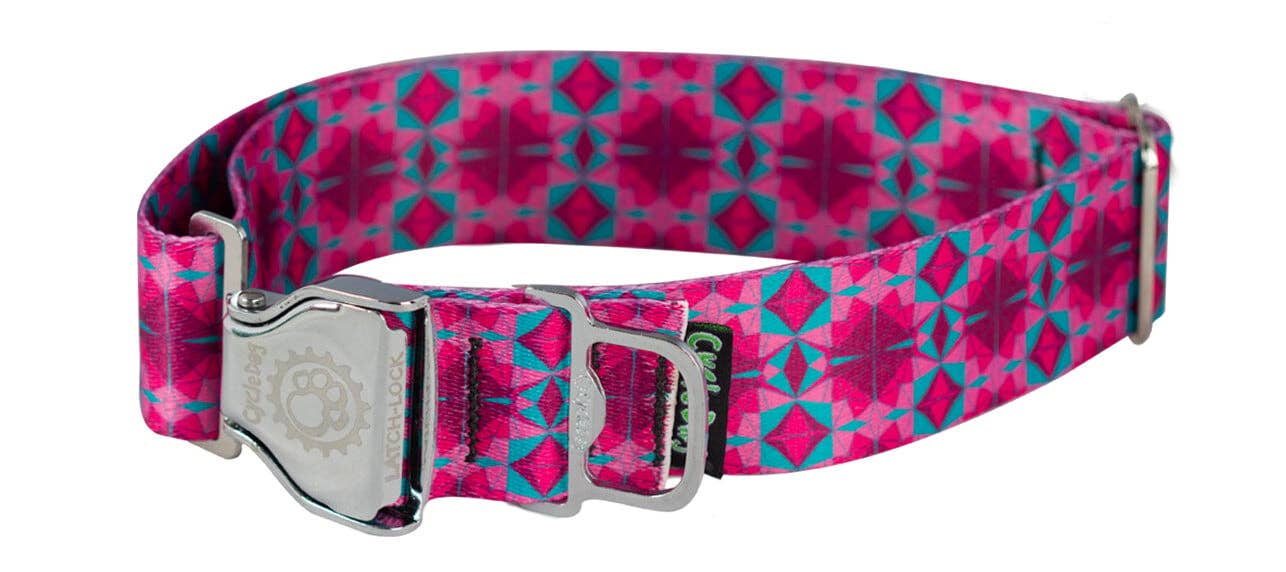 Cycle Dog - Ecoweave Fuchsia Teal Kaleidoscope Dog Collar: Latch-Lock Metal Buckle / Large / Standard