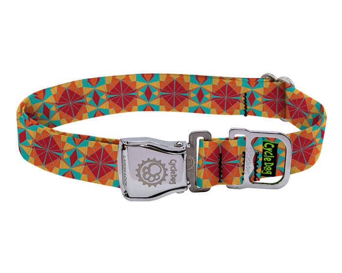 Cycle Dog - Ecoweave Red Orange Kaleidoscope Dog Collar: Latch-Lock Metal Buckle / Medium / Standard