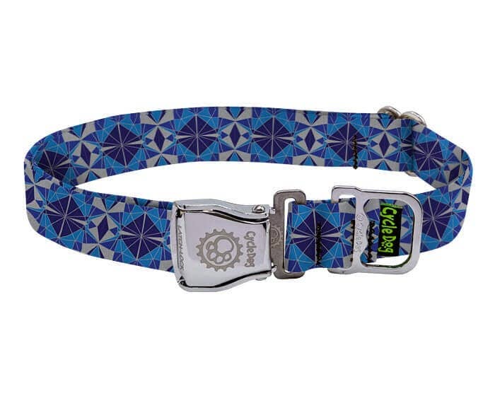 Cycle Dog - Ecoweave Blue Kaleidoscope Dog Collar: Latch-Lock Metal Buckle / Large / Standard