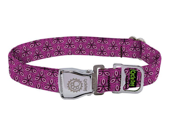 Cycle Dog - Ecoweave Fuchsia Tri-Style Dog Collar: Latch-Lock Metal Buckle / Medium / Standard