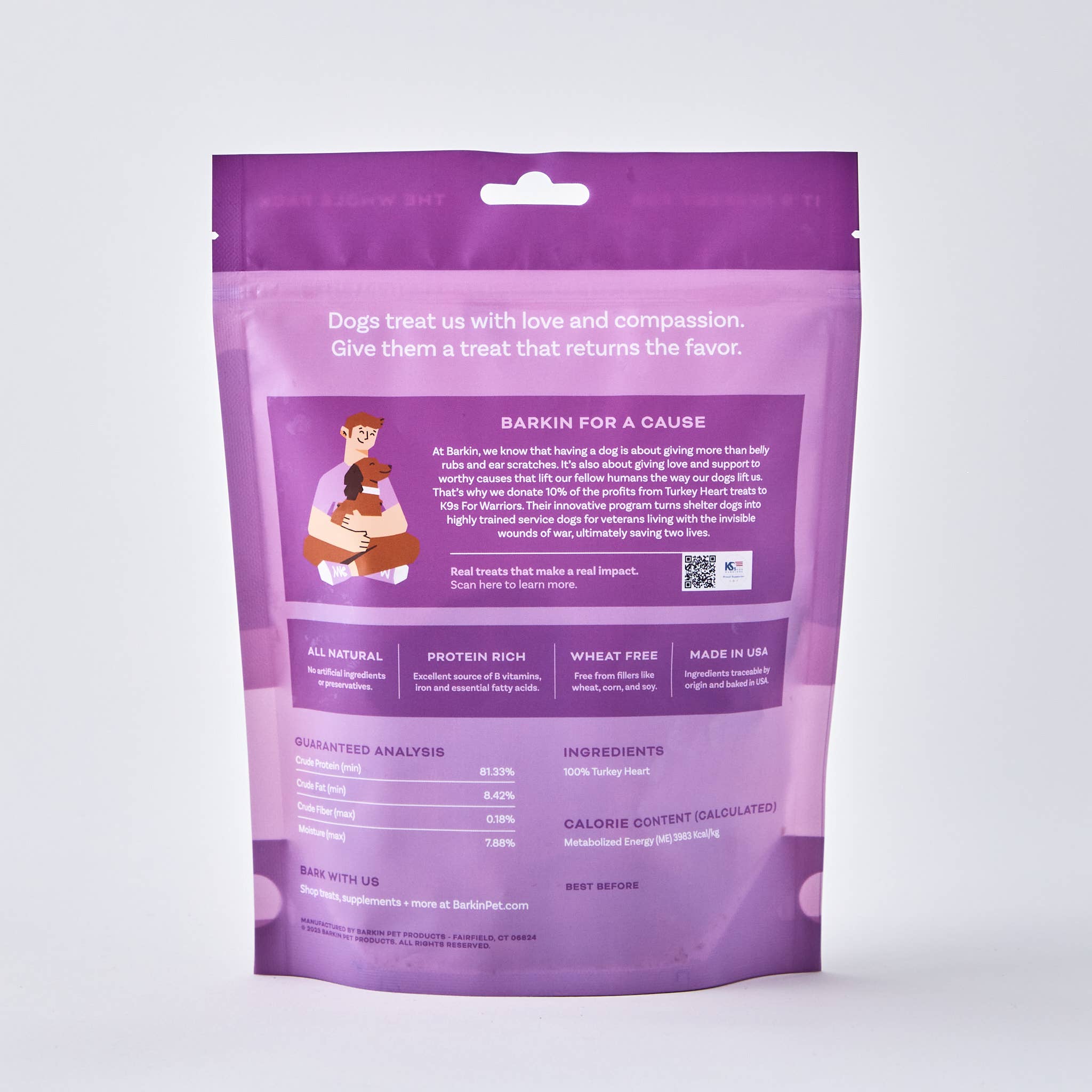 BARKIN - FREEZE DRIED TURKEY HEART SINGLE INGREDIENT DOG TREATS